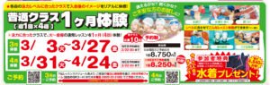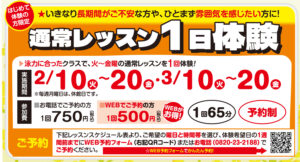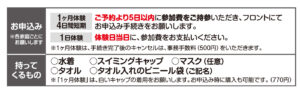普通クラス1ヶ月体験に参加後、ご入会の方全員に水着プレゼントいたします🎁